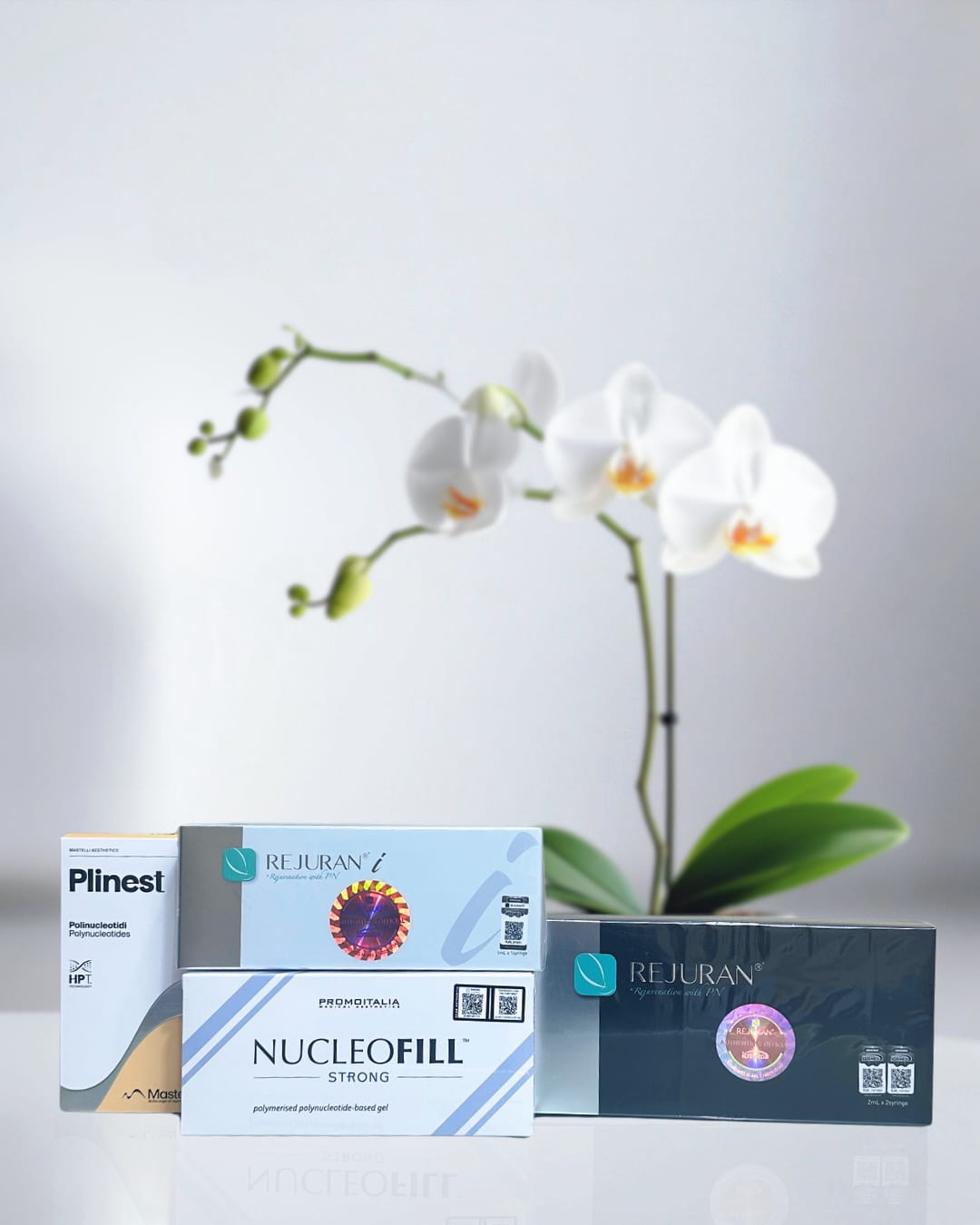While there are many cheaper alternatives to salmon DNA injection in Bali, we stick to the premium product, Rejuran & Nucleofill (Salmon DNA) & Plinest (Trout DNA) made from the bio-stimulating substance called polynucleotide. Polynucleotide (PN) is a more concentrated and purified version of PDRN, so you can expect a better result.